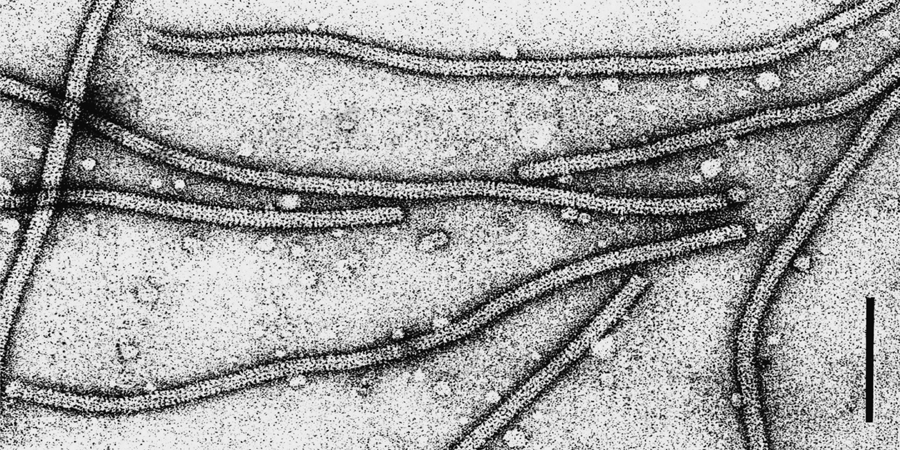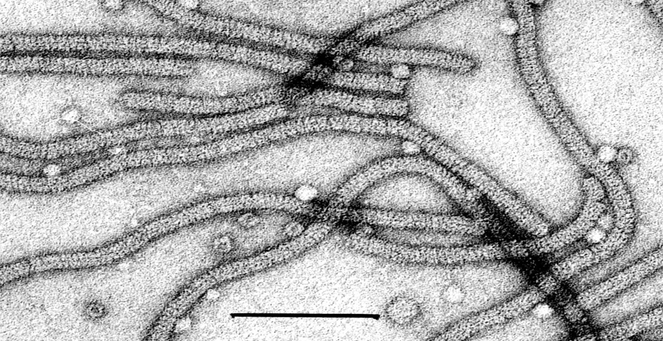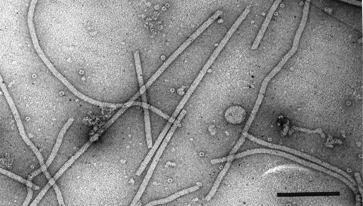 Virions are flexuous filaments of 720 nm modal length and about 13 nm in diameter.