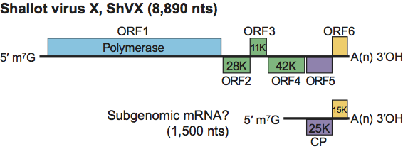 Figure 2 Genome organization and translation strategy of shallot virus X.