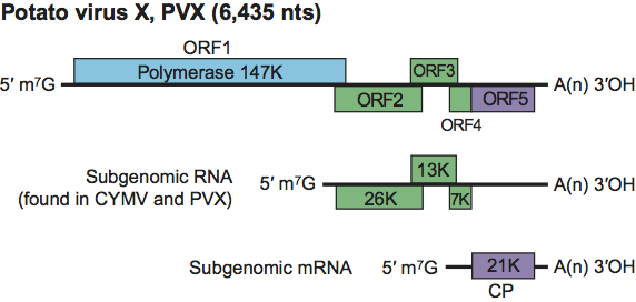 | Potexvirus | plants | 470–580 | 5 | 150–195 | 18–27 |
