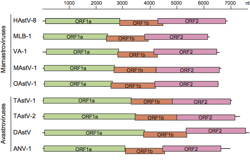 Figure 3 Genome organization of selected strains of astroviruses belonging to different host species.