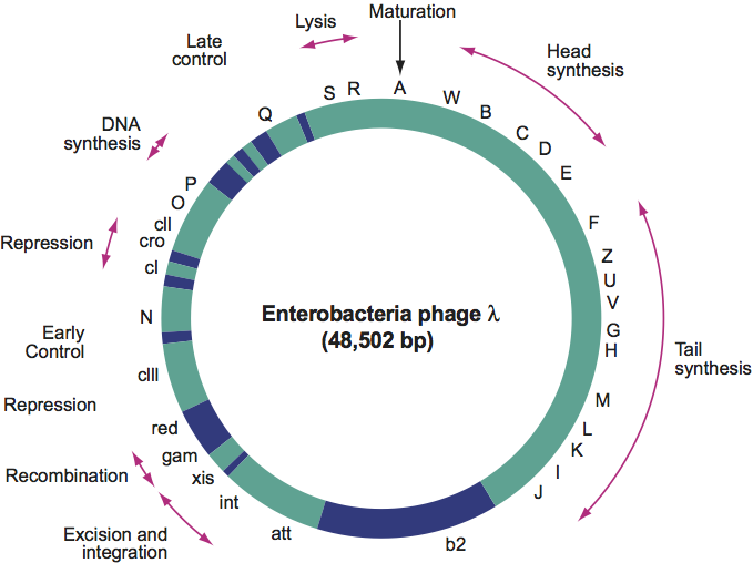 Figure 2 Simplified genetic map of Enterobacteria phage  (). Dark portions of the genome indicate non-essential regions.