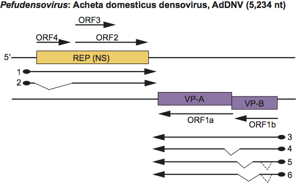 | Acheta domesticus densovirus | [AX344110] | (AdDNV) |